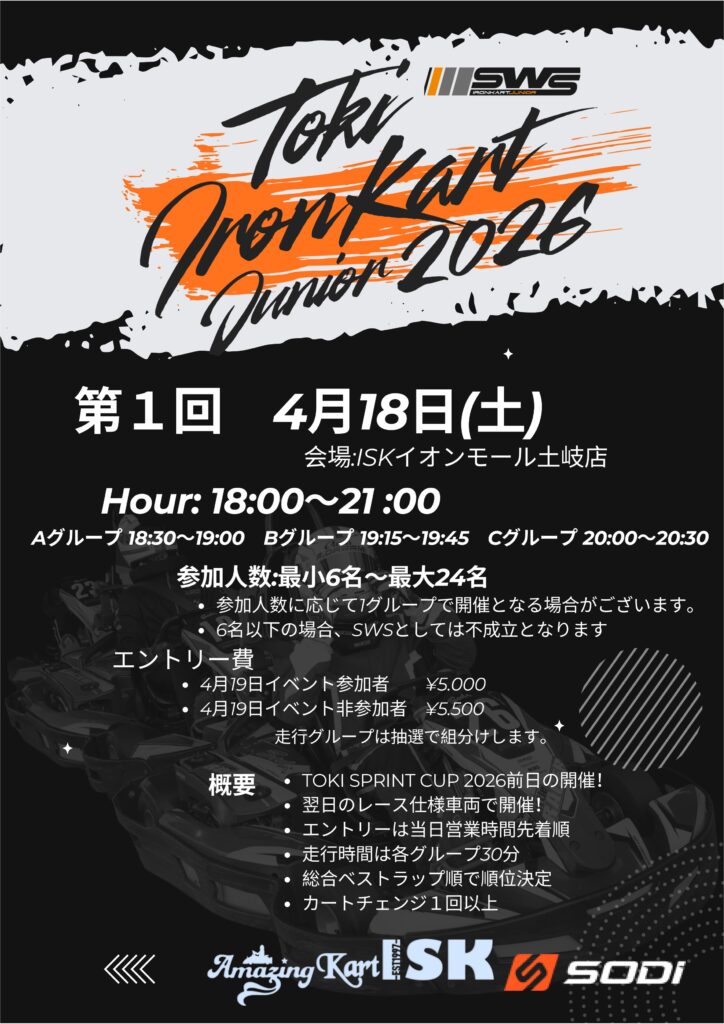 2026年4月19日開催のTOKI SPRINT CUP 2026 JUNIOR Rd1.2.3の前日にIRON KARTを開催します。