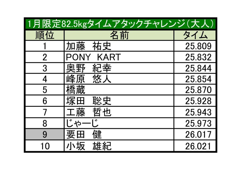 1月も開催しています!大人は14号車、ジュニアは27号車でのタイムアタックとなります!