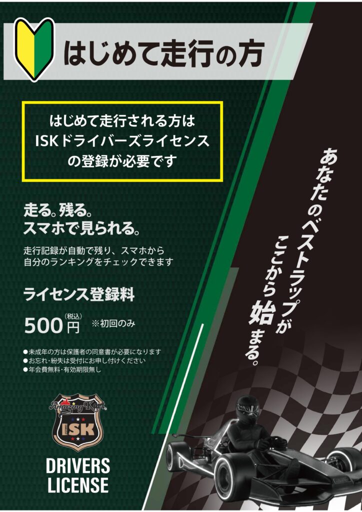 【ISKドライバーズライセンス】のご登録料500円(既存メンバーの方は登録料は不要)が必要となります。