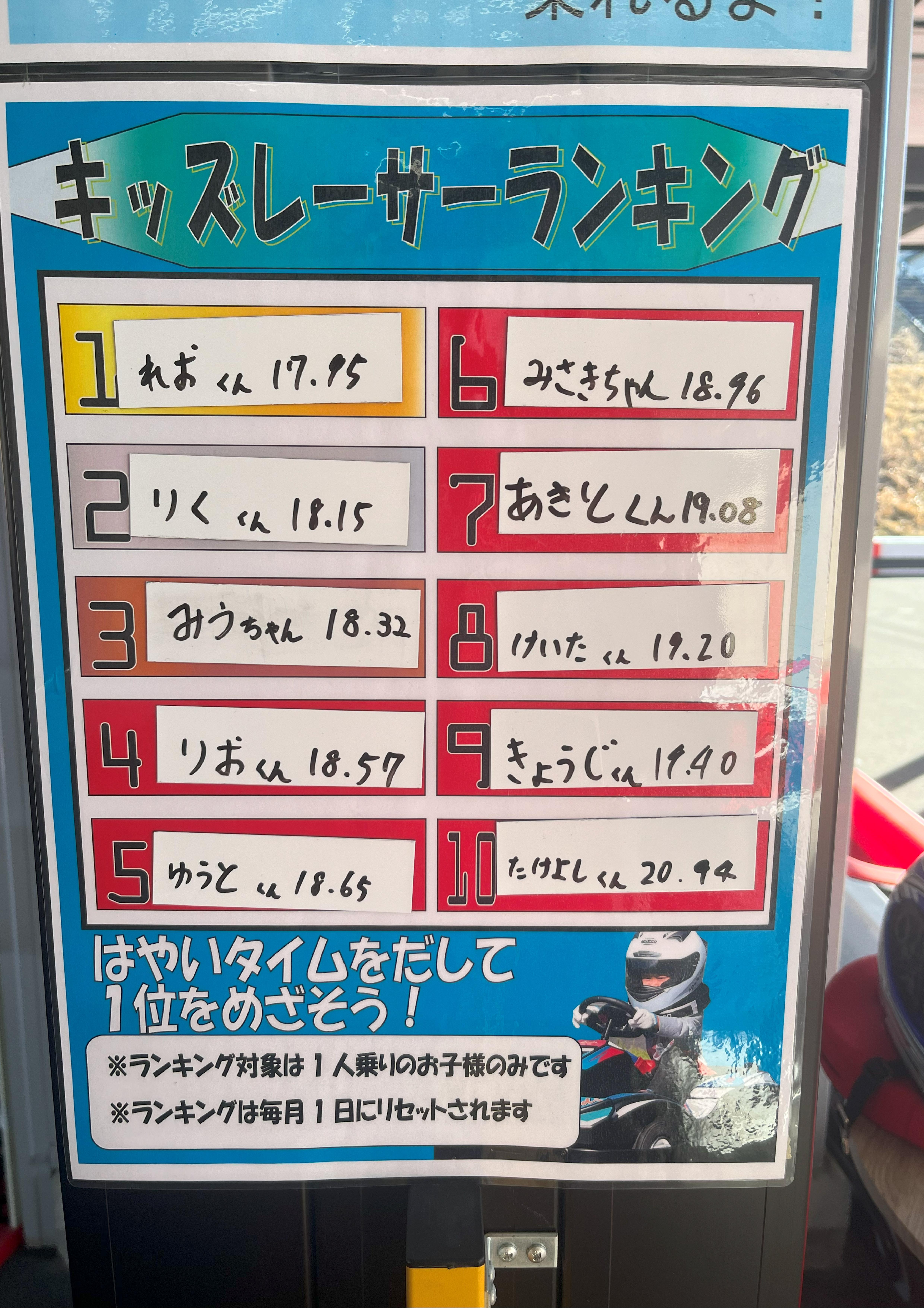 新しく始まったキッズカートランキングですが、たくさんのドライバーの皆さんにチャレンジして貰っています!