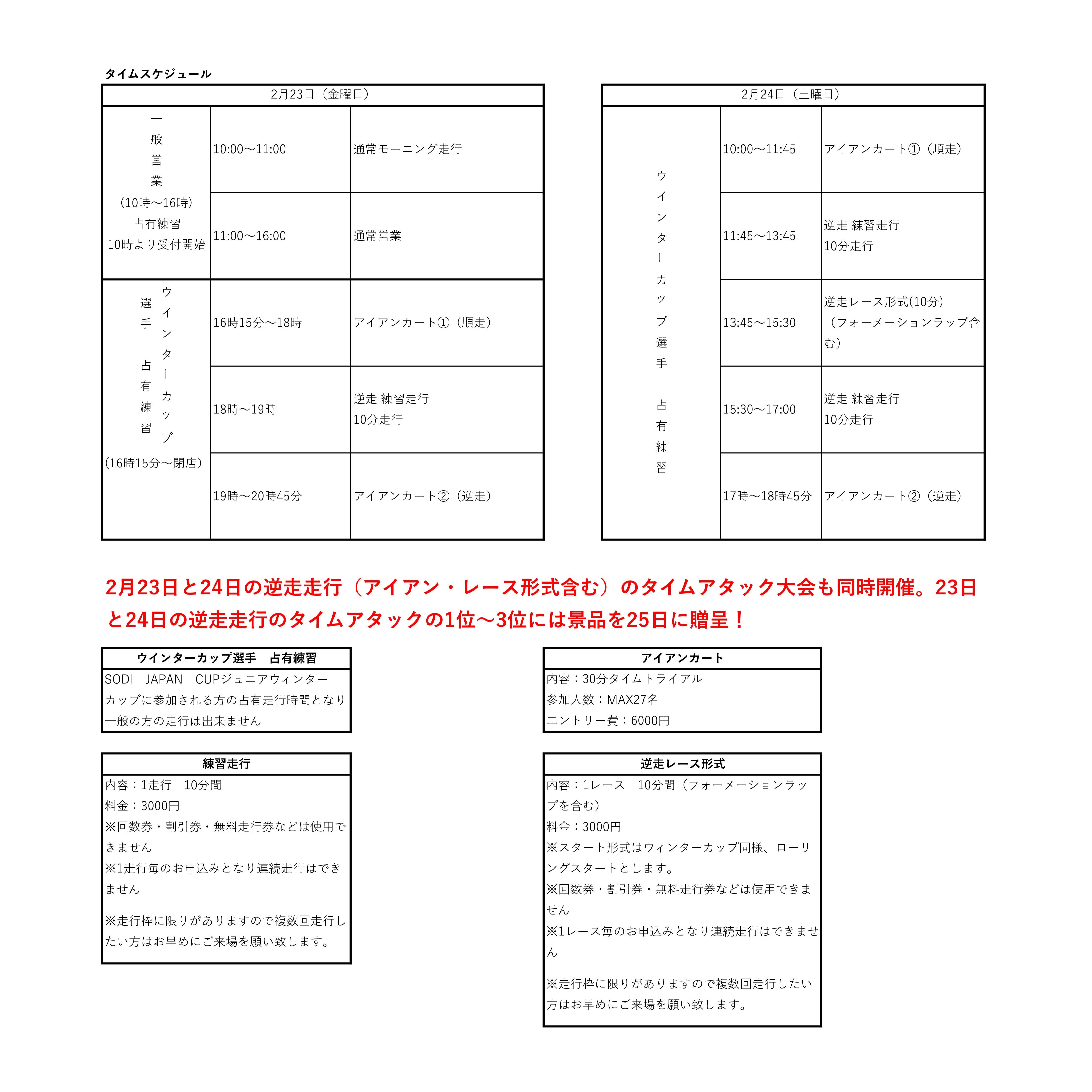 ◆2月23日と2月24日の逆走走行(アイアンカート・レース形式を含む)のタイムアタック大会も同時開催!