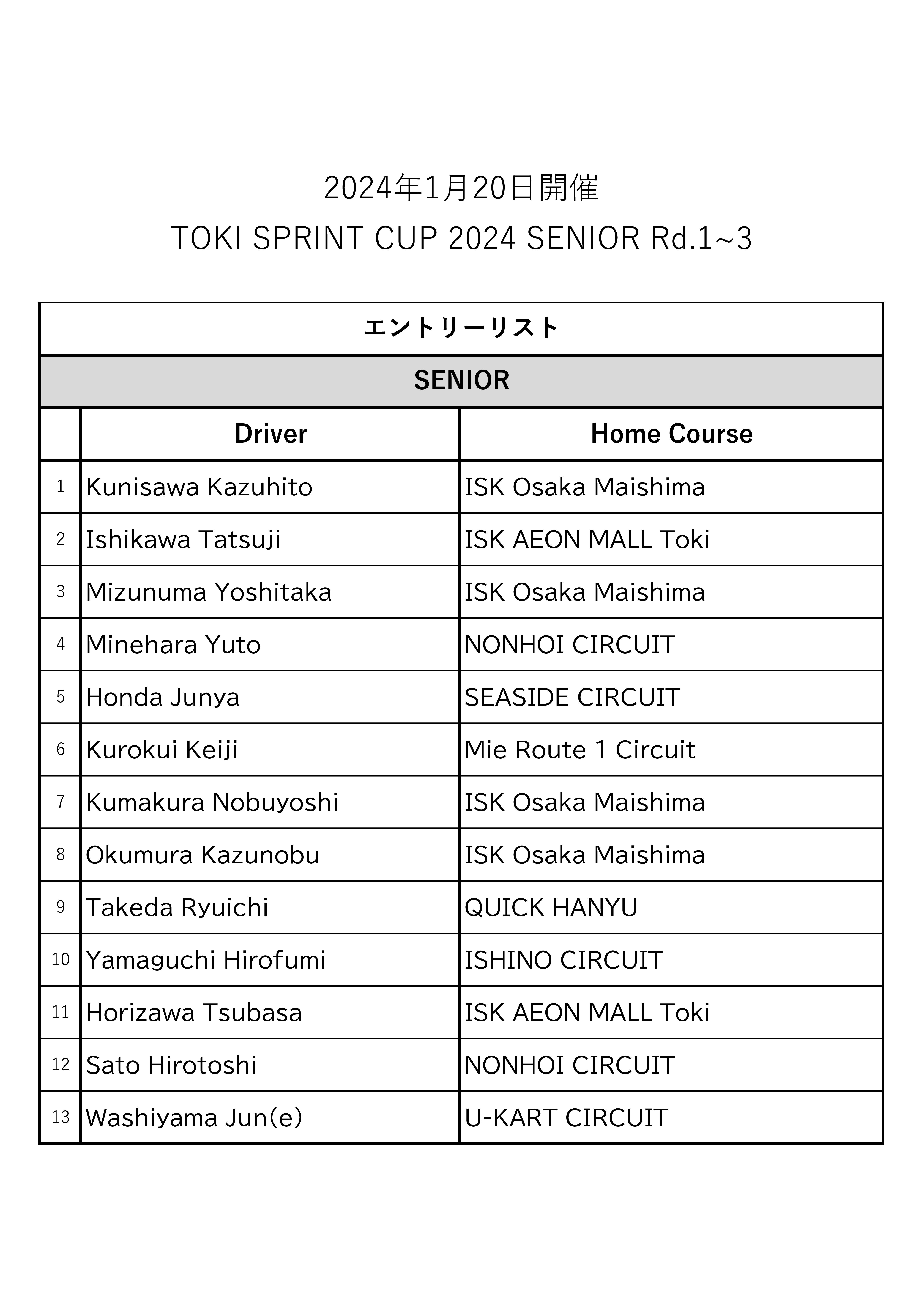 TOKI SPRINT CUP 2024 SENIOR 開幕戦のエントリーもまだ受け付けております!