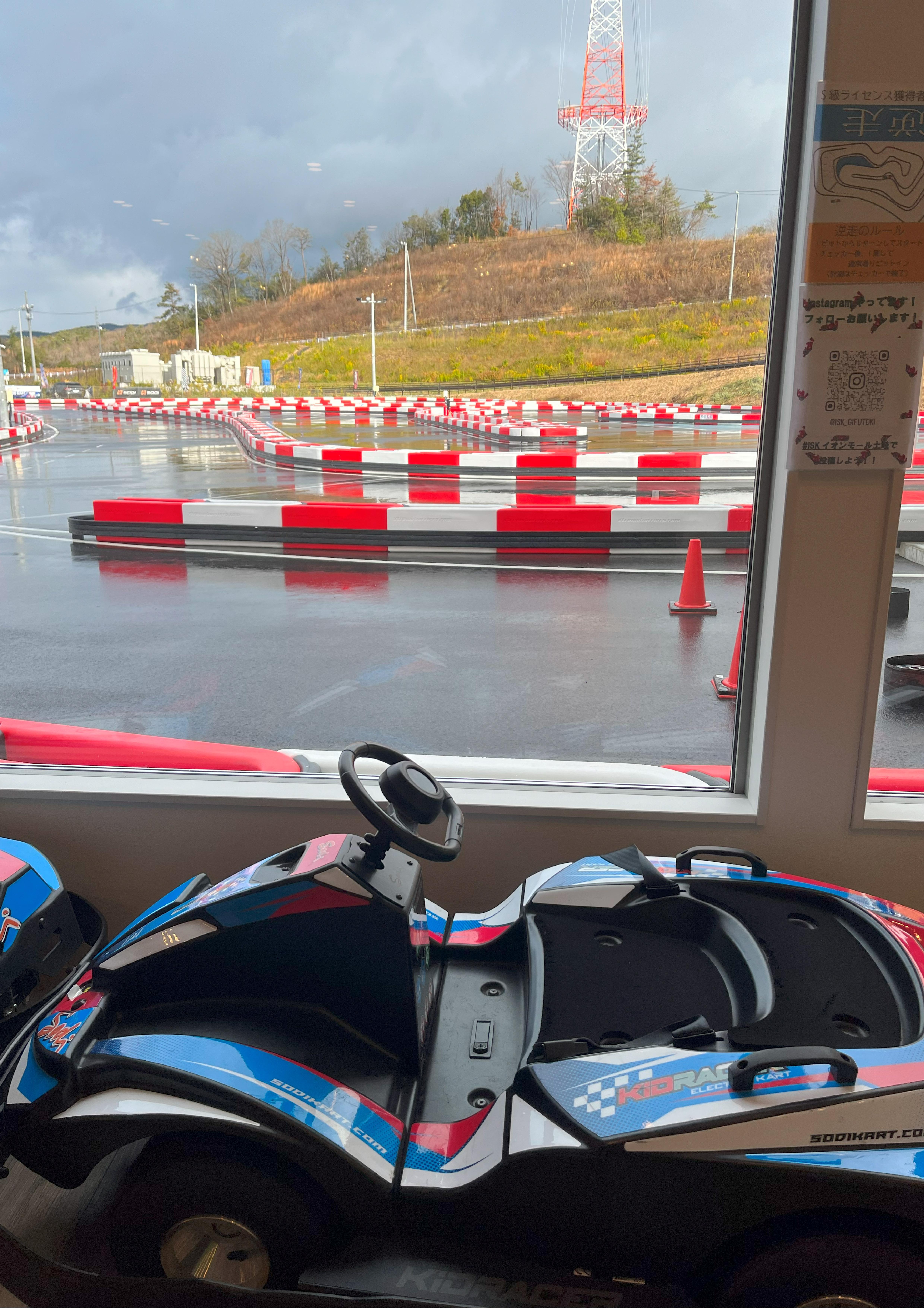 本日の土岐店は曇り ウエット路面でのスタートです。