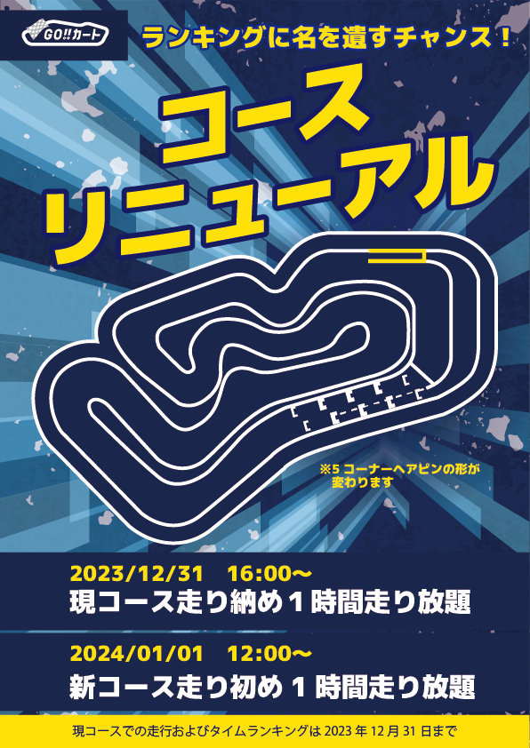 新コースは1月1日から!12時から新コース走り初めの1時間走り放題を行います☆