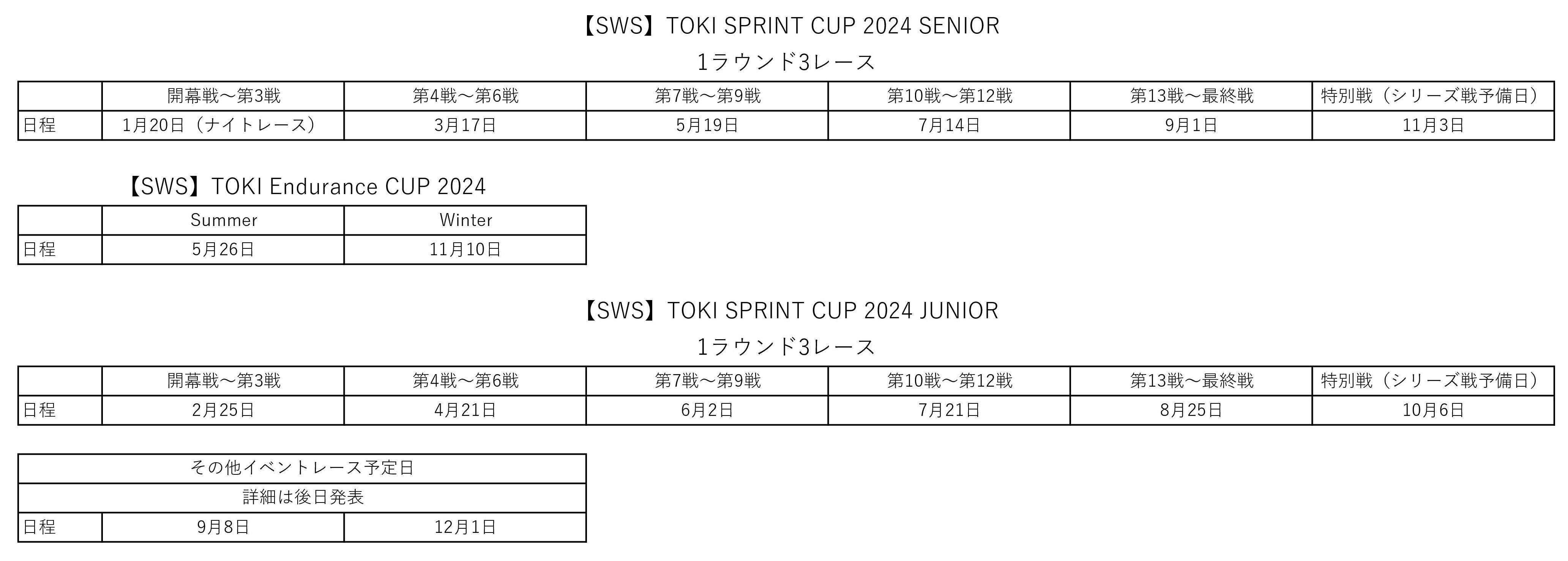 大人スプリントシリーズ、Jrスプリントシリーズ、大人耐久レースはSWSでのレースを開催します☆
