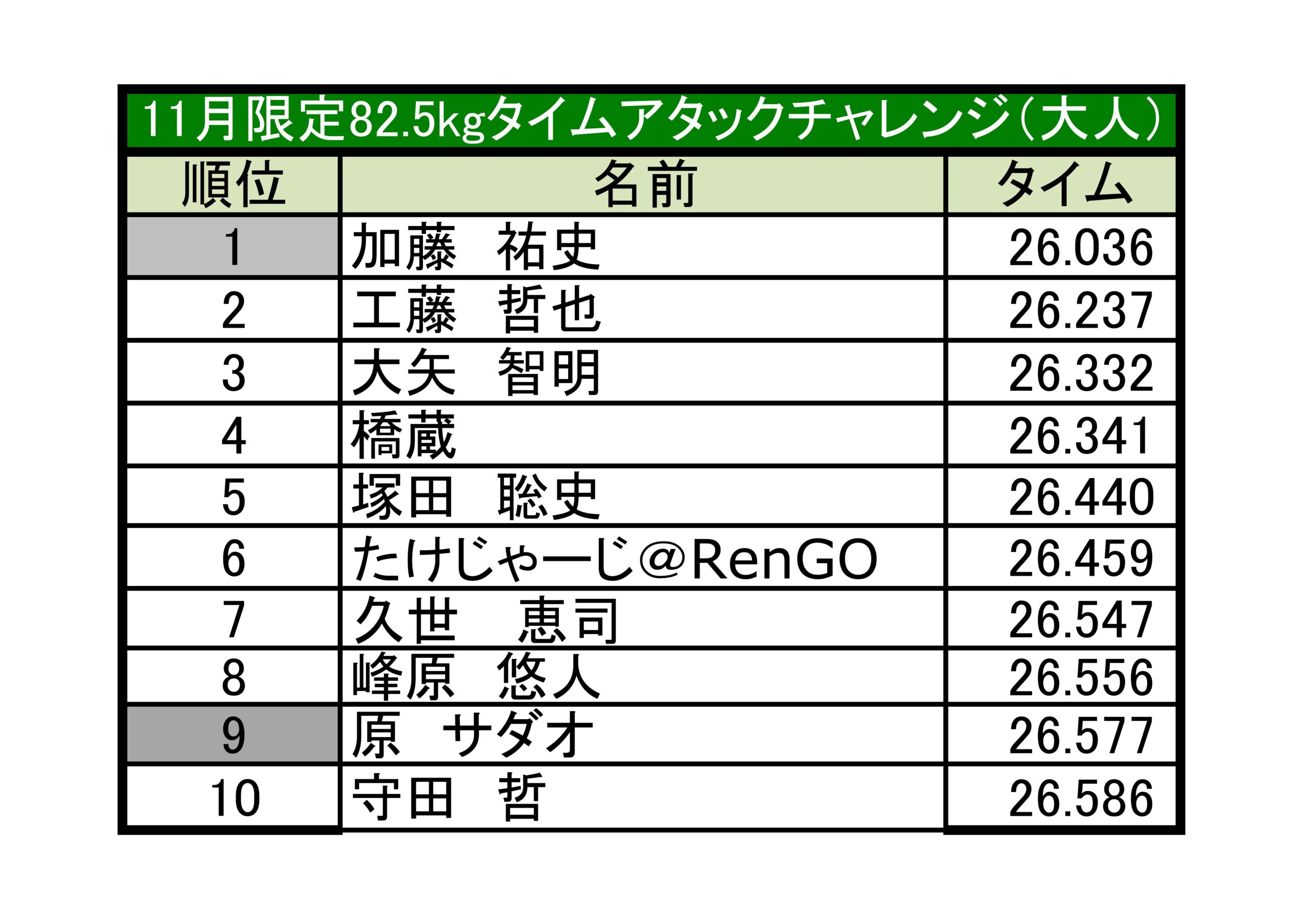 大人82.5kgクラスの1位は 加藤祐史 選手です。2位とコンマ2秒差をつけて見事1位を獲得しました。1位おめでとうございます!!!