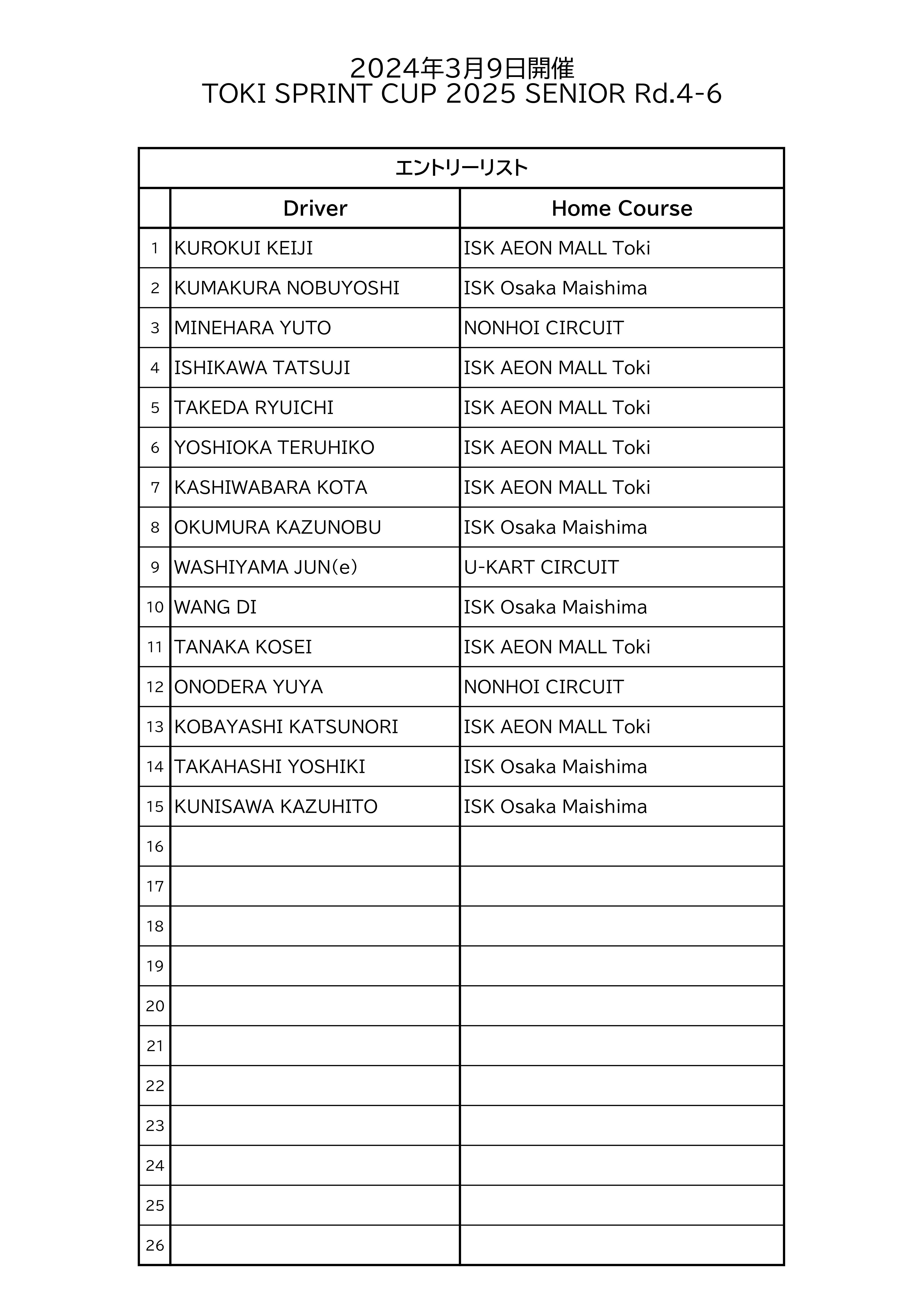 TOKI SPRINT CUP 2025 JUNIOR Rd.4~6 エントリー