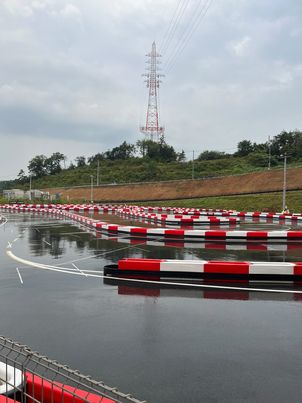 昨日からの雨の影響で路面は全面ウェットです!雨の日はお得に走れる雨の日プランがオススメです!